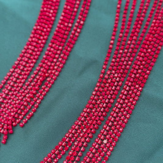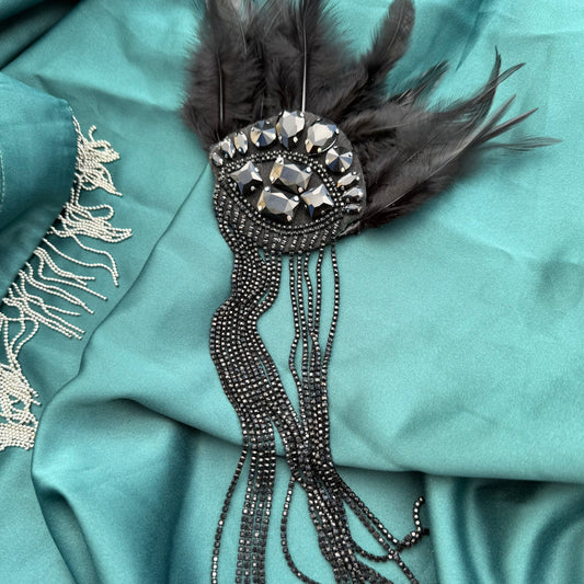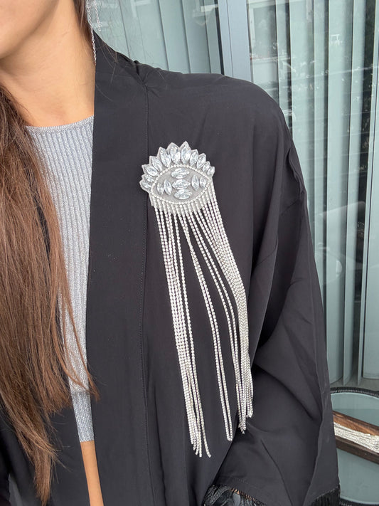 Handmade brooch. Decorated with crystal rhinestones chain trim.