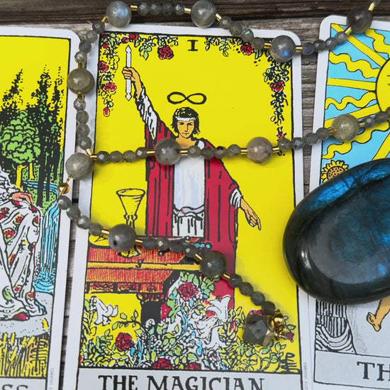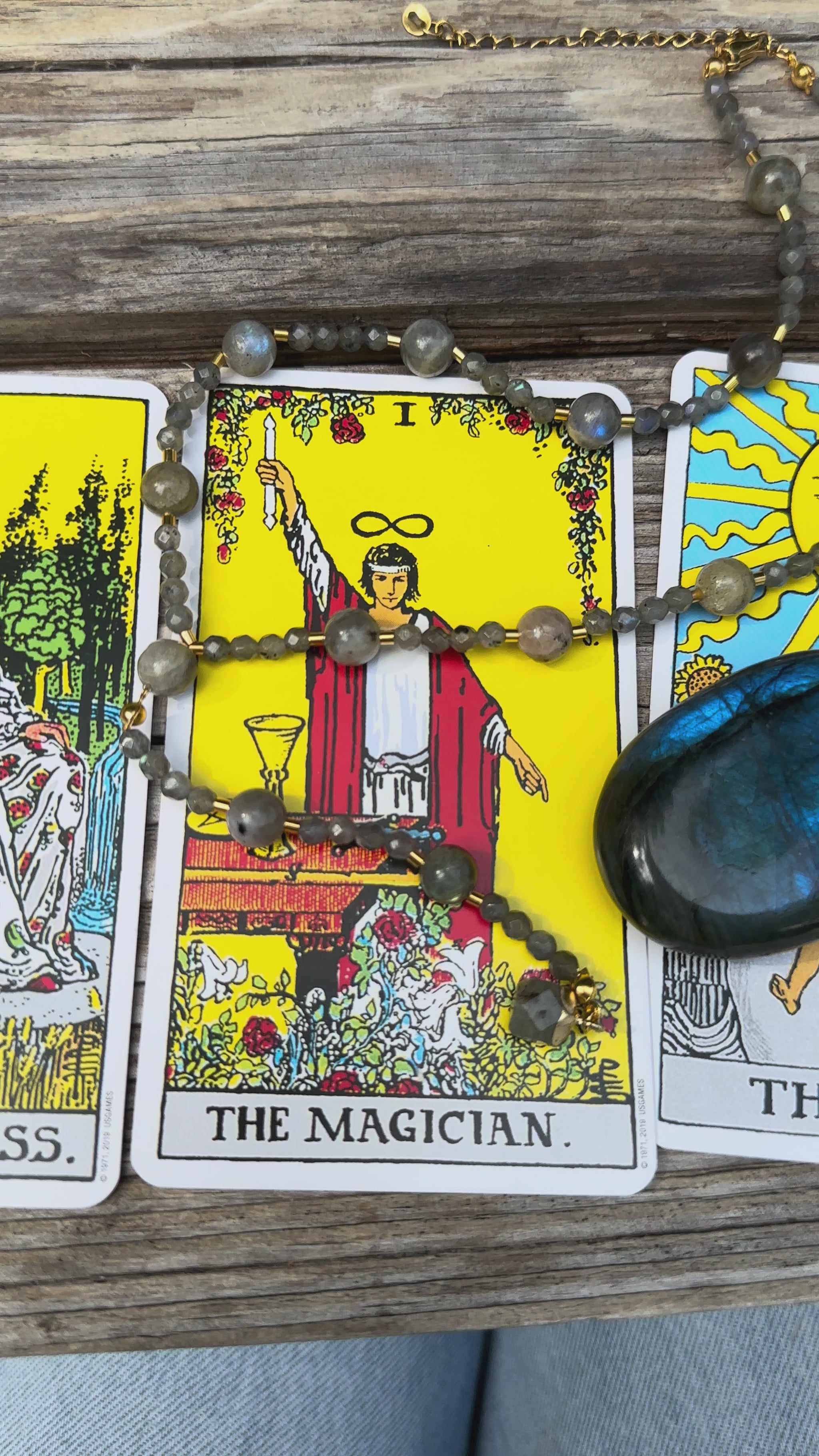 Labradorite. The stone of the Magician. This pendant is designed as a magical amulet-guide. Its energy will guide you through key transitions, providing clues, amplifying your answers, and reminding you of who you truly are.